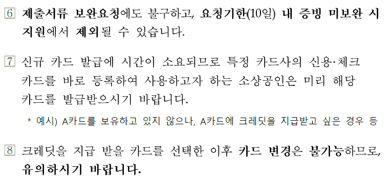소상공인 1인당 크레딧 50만원을 등록한 카드로 지급